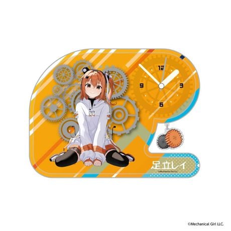 "等身大ヒューマノイドロボット 足立レイの描き下ろしイラストを使用した、鮮やかなカラーのアクリル時計。