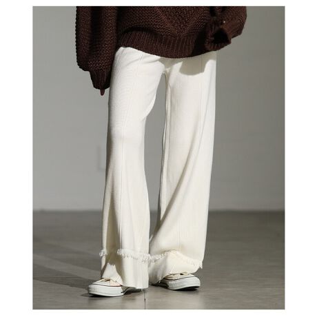 【パンツ】 レディース ボトムス ニット ロング丈 カジュアル シンプル モード 体型カバー 秋 冬