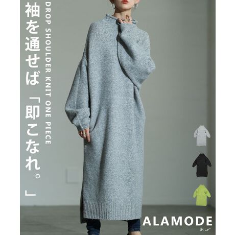 ラムライクな風合いが心地いいニットワンピース。ボトルネックで首元までしっかり暖かく、サイドスリットがほどよい抜け感をプラスします。そのまま着るのはもちろん、ボトムスを重ねたレイヤードスタイルも楽しめる一枚です♪