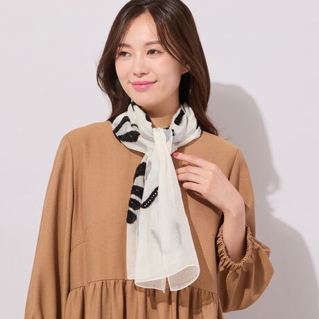シアー感のある薄手のタイプなので、春夏のコーディネートに合わせやすいストールです。