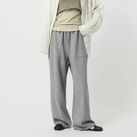 トレンドのスウェットパンツのようなラフさがありながら、落ち感のある滑らかな素材やすっきりとしたシルエットが大人のカジュアルスタイルにぴったりのアイテム。