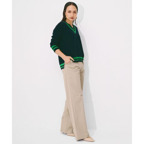 ■デザイン程よいボリューム感が特徴で脚のラインをカバーしてくれるカーブパンツです。カジュアル過ぎない素材で仕上げON/OFF活躍します。通勤できれい目ジャケットやジレ合わせはもちろん、カジュアルなニットやシャツなど、どんなトップスにも合わせやすい1枚です。ストレッチ性のある素材でアクティブなシーンにもおすすめです。
