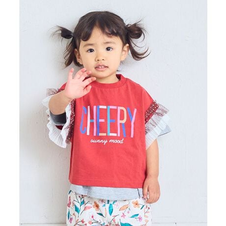 袖部分には星柄を散りばめたチュールフリルをあしらい、シンプルな身頃に華やかさをプラスしています。