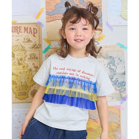フロントにあしらったロゴプリントに、立体感のあるドットチュールを重ねたデザインが印象的な半袖Tシャツです。