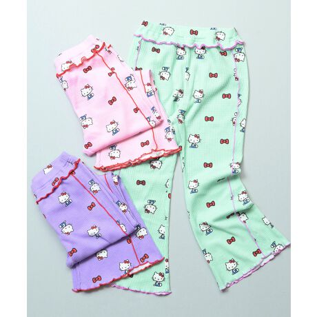 ハローキティの総柄に、配色メローがアクセントになったフレアパンツ。
