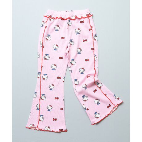 ハローキティの総柄に、配色メローがアクセントになったフレアパンツ。