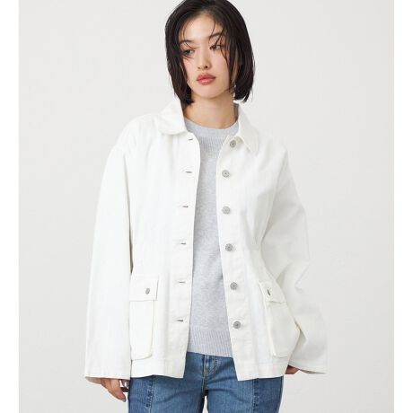 【淡色ブルー】: 強撚糸を使用した綿100%デニムは、ドライタッチな風合いが魅力。ムラ感が少ないため、カジュアルすぎず洗練された表情が特徴です。どちらのカラーも軽やかな着心地で、春のライトアウターとして活躍します。
