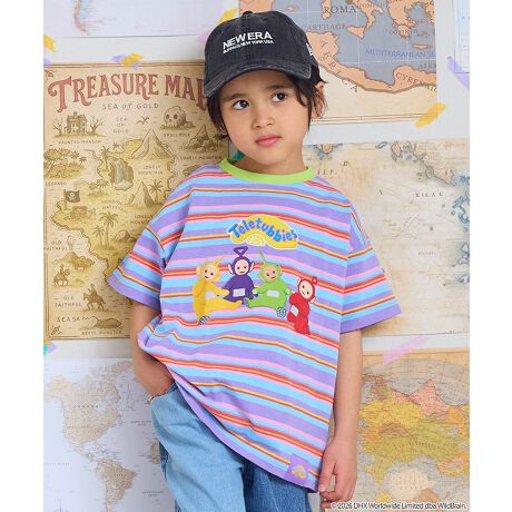 カラフルなボーダー柄に、フロントのテレタビーズプリントが映えるキャッチーなデザインです。