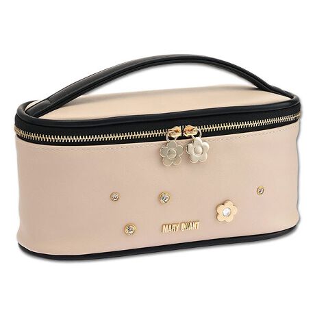 大小のビジューを散りばめたポーチシリーズ。◆シリーズ共通ポイント・ロゴの切文字金具をON・ビジュー入りのデイジー◆アイテム紹介(ミニバニティ)・コンパクトながら充実した収納力・デイジーの引き手内側:ポケット×1、ギャザーポケット×5、持ち手裏側ブラシポケット×3[型番:225-854982]