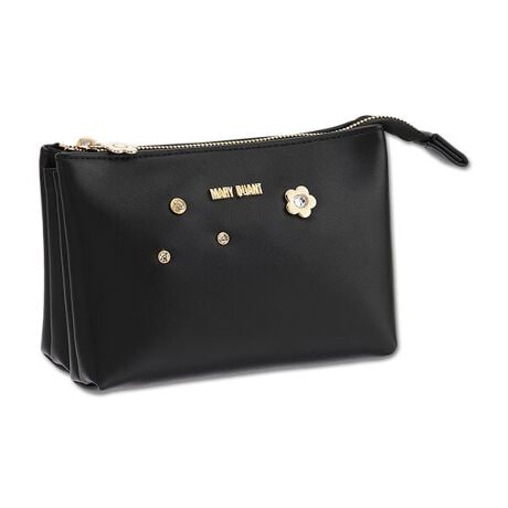 大小のビジューを散りばめたポーチシリーズ。◆シリーズ共通ポイント・ロゴの切文字金具をON・ビジュー入りのデイジー◆アイテム紹介(3ポケットポーチ)・中が3つに仕切られていて、アイテムを整理して収納可・「カラーパレット M」とリップが入るサイズ感・デイジーの引き手内側:ポケット×1、リップポケット×2[型番:225-854984]