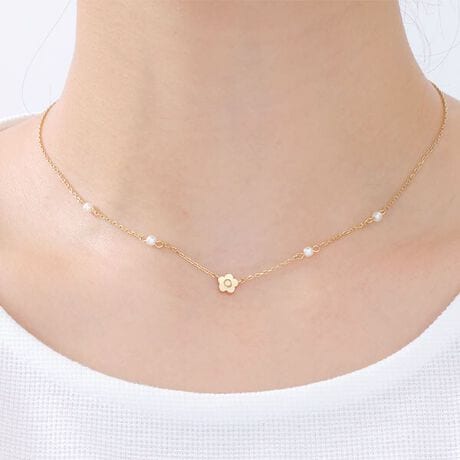 小さめのパールとチェーンが華奢なデザインのアクセシリーズ。◆シリーズ共通ポイント・デイジーはメタルで表現・オリジナルロゴプレート◆アイテム紹介(ネックレス)・両サイドにパールが2つずつ・アジャスターエンドにオーバル型ロゴプレート◆関連アイテム同デザインでビジュータイプのアクセシリーズも。[型番:225-904631]