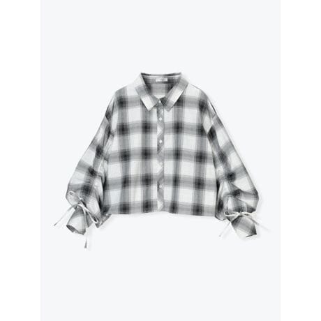 ラインストーン ショート丈チェックシャツ