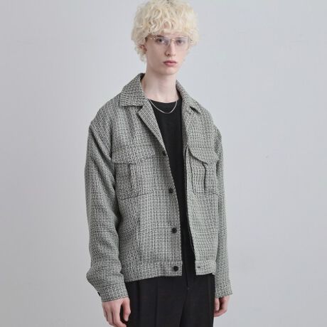 豊かな表情を持つファンシーツイードをメインに、襟やポケットフラップに上品な光沢感のポリエステルツイルを組み合わせました。