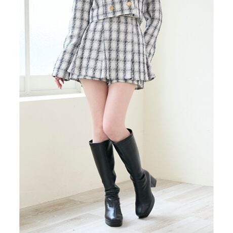 ミニ丈ならではの甘さとツイードの上品さがマッチした一着です。