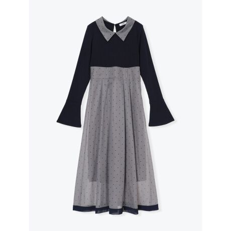 [型番:25550726036]ドット柄のデザインがガーリーなムードを演出するワンピース。身頃部分はリブ素材で切り替えられており、タイトなフィット感を実現します。袖口に向かってなだらかに広がるシルエットがポイント。休日のお出かけコーデに大活躍してくれるアイテムです。モデル(アイボリー着用)身長:160cmMサイズ着用