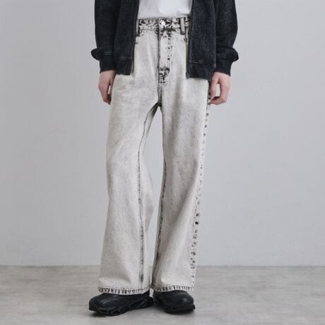 独創的なディテールが光る、存在感のあるワイドストレートシルエットのデニムパンツ。