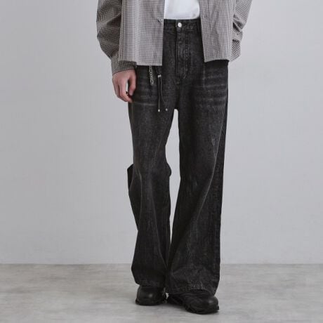 独創的なディテールが光る、存在感のあるワイドストレートシルエットのデニムパンツ。