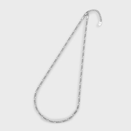 サイズの異なる喜平チェーンと楕円チェーンをリズミカルに組み合わせた、フィガロチェーンネックレス。