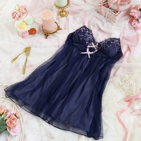 カップがついたタイプのスリップなので、ブラジャーを着けずにこれ1枚でご着用いただけます。身生地はチュール素材を使用しており、さらりとした気持ちの良い着心地です。