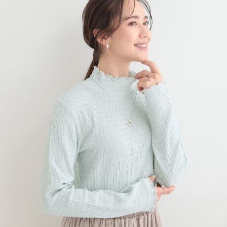 ぽこぽことした表面感が特徴のハイネックインナー。