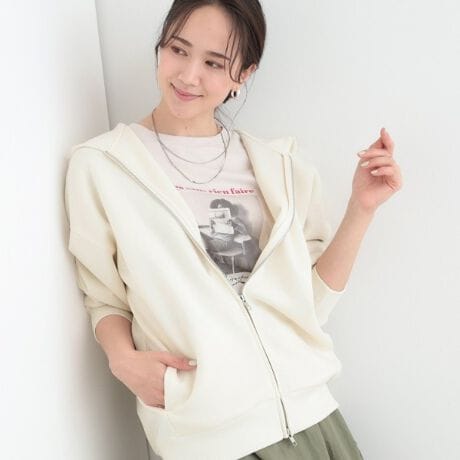 ダンボール素材×ダブルジップのジップパーカーは、汎用性がありシーンに合わせたコーディネートが楽しめます。