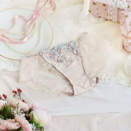 後身生地は総レースになっており、伸縮性のあるレースが肌に心地よくフィットします。足口にはゴムを使っていないので食い込まず、少しゆとりをもった履き心地です。ボトムスへもショーツラインが響きません。通気性がよく、快適にご着用いただけます。甘すぎず、大胆過ぎない特別感あふれるデザインが、ラグジュアリーな大人の雰囲気を演出します。
