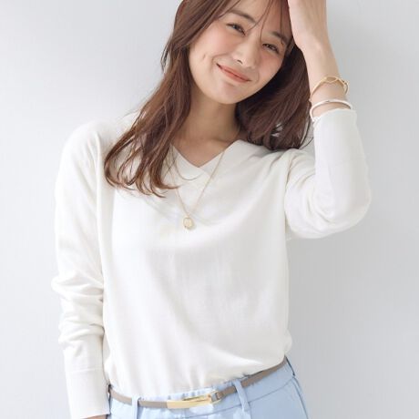 ミニマルなデザインにシャープなVネックが女性らしさを添え、1枚で洗練されたスタイルを叶えます。