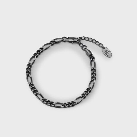 サイズの異なる喜平チェーンと楕円チェーンをリズミカルに組み合わせた、フィガロチェーンブレスレット。