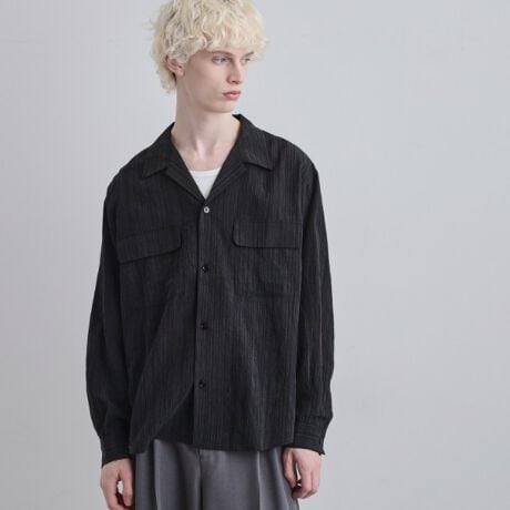 リラックスした雰囲気のオープンカラー(開襟)シャツ。