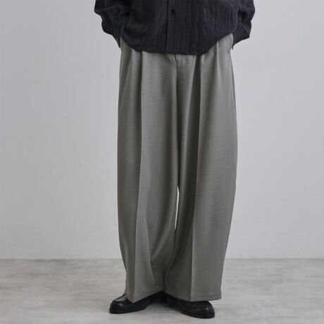 トレンド感のある極太のバギーシルエットを、上品なスラックスのデザインに落とし込んだ一本。