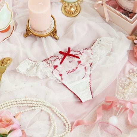 バレンタインの甘くときめく気持ちを遊び心たっぷりに表現した、リサマリのバレンタインシリーズです。レースにあしらわれた立体的な山型模様は、よく見ると愛らしいハート型のデザインに。1つ1つステッチを変えた小さなハートや、「Risa Magli」の文字をさりげなく散りばめて、特別感を詰め込みました。フロントにはチュールレース、中央にはハートのチャームと、バックスタイルにはきらめくガラスビーズをほどこして、心ときめくワンポイントに。胸いっぱいにハートがあふれる、バレンタインをHappyに楽しめるコレクションです。