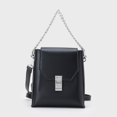 シャープな縦型フォルムがモードな雰囲気を演出するショルダーバッグ。