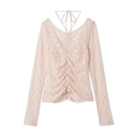 シンプルなチュールレースカットソーにギャザーを効かせた、上品でフェミニンな一枚。