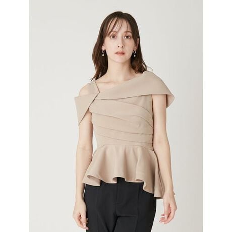 女性らしさ溢れるペプラムブラウスに、ワンショルデザインでモード感をプラスしました。