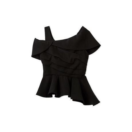 女性らしさ溢れるペプラムブラウスに、ワンショルデザインでモード感をプラスしました。