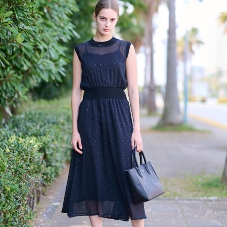 【キラッと光るフィルムドット素材が一枚で華やかさを演出してくれる主役級ワンピース】