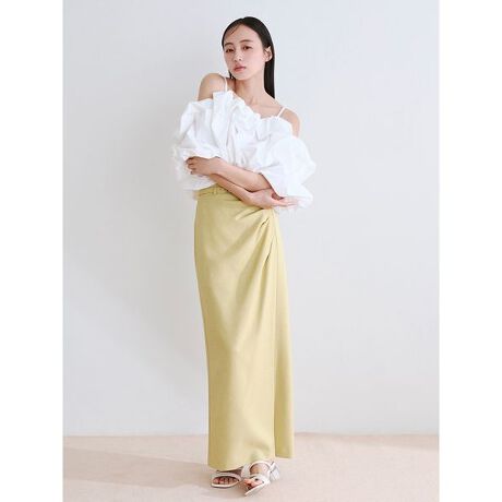 タックで立体感をもたせたストレートスカート。