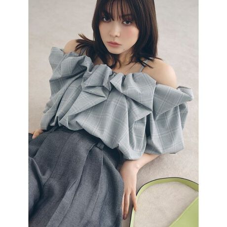 身頃から袖に向かってボリュームたっぷりなパフが特徴的なオフショルブラウスです。