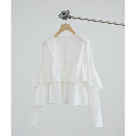 贅沢にあしらったティアードフリルが目を惹くデザインブラウス。