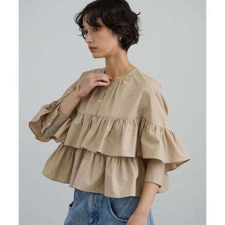贅沢にあしらったティアードフリルが目を惹くデザインブラウス。