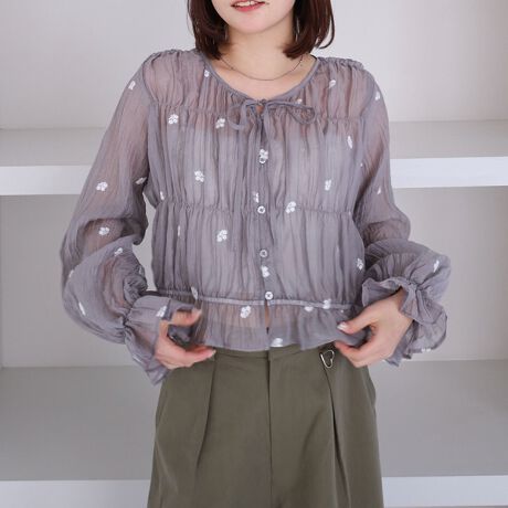 ■軽やかに華やぐ、花柄刺繍ギャザーブラウス■