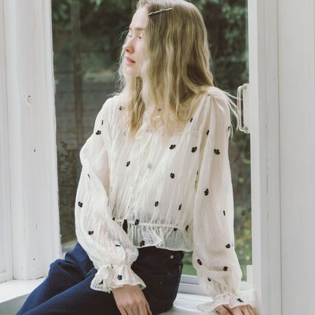 ・ナチュラルな花柄刺繍が目を引く、春の主役ブラウス