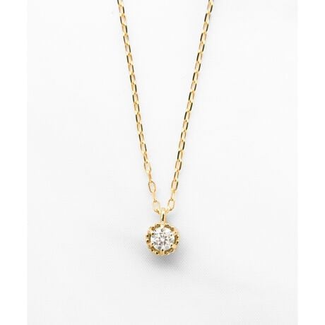 「花の女神」を意味する「FLORA」からインスパイアされた、一粒天然ダイヤモンドのK10ゴールドネックレス。美しいきらめきを引き出すよう、ダイヤモンドをとても繊細な6本の爪でセッティング。正面はシンプルなラウンドフォルムで、石座の裏側はさりげなく六枚花をかたちどっています。さらに、石座には触れてみたくなるようなアンティーク風の細かなミルテクスチャーをプラス。モダンな表情と、やさしくフェミニンな表情を併せ持つデザインに仕上げました。「何よりも強い」という意味を持ち、永遠の絆を象徴するとされるダイヤモンド。肌身離さず着けたくなるエターナルなアイテムは、ご自身のお守りとしても、大切な方への贈り物にもおすすめです。