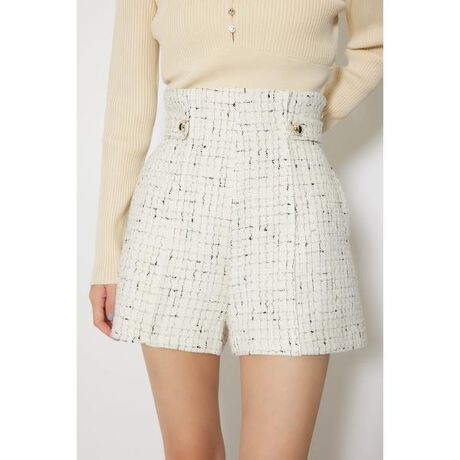【春の雰囲気漂うツイードショートパンツ】■ポイントエレガントな印象のツイードショートパンツ。ウエストにタブを施し、ウエスト位置をマークし腰位置を高くみせてくれます。ハイウエスト仕様で様々なトップスとの相性も◎足長効果も抜群なレディーなショートパンツです。■ディテールしっかりとした生地感ですが、硬すぎずボディーラインをキレイに見せてくれるのがポイントです。裾巾は細すぎない設定で、太ももを細く見せてくれる視覚効果も◎■スタイリング同シリーズの110JS530-0351ツイードショートJKとの合わせがおすすめです。スタイルアップ効果をこだわったシルエットを是非お楽しみください。■生地透け感:なし裏 地:あり伸縮性:なし光沢感:なし厚 さ:中肉■商品のお気に入り登録お気に入りアイテムの再入荷・在庫1点などの通知を受け取ることができます。[注意事項]※画像の商品はサンプルです。実際の商品と仕様、加工が若干異なる場合があります。※画像の商品は光の照射や角度、お使いのモニター環境により、実物と色味が異なる場合がございます。※着用、お取り扱いの際は、アテンションタグをご確認ください。