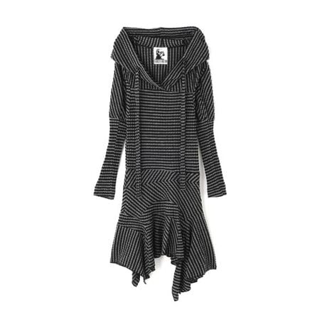 ストライプ柄が印象的なニットフーディードレス。縦横に切り替えられたストライプデザインが、立体感と動きを生み出し、1枚で存在感のある仕上がりです。フード付きのデザインがカジュアルな要素をプラスしつつ、裾にかけて広がるイレギュラーヘムがモードな雰囲気を演出。柔らかなニット素材で着心地も良く、レイヤード次第でロングシーズン活躍します。ブーツやレギンスと合わせたスタイリングはもちろん、主役級アイテムとしてコーディネートを格上げしてくれる一着です。