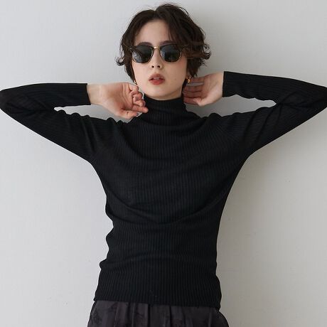 繊細な透け感が魅力の防縮Wシアータートルリブニット。