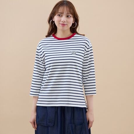 首元のパイピングカラーがアクセントのボーダーTシャツ。