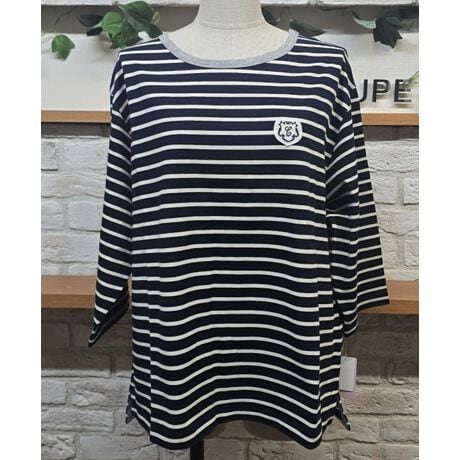 52-ネイビー→ネイビー地に白のボーダーに久保元グレーのパイピング大きいサイズ ラクープ アルディラ
