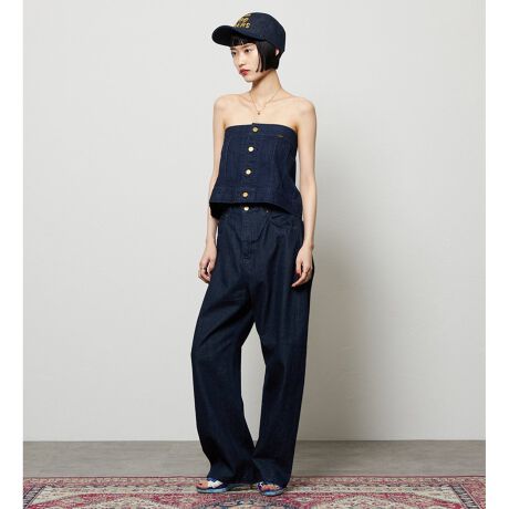 毎シーズン好評のカーブパンツの新型です。裾にかけて脇の切り替えを前に振ることで程よいカーブシルエットを表現しています。