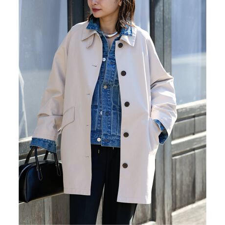 オーバーサイズのAラインシルエットが特徴的なステンカラーコート。